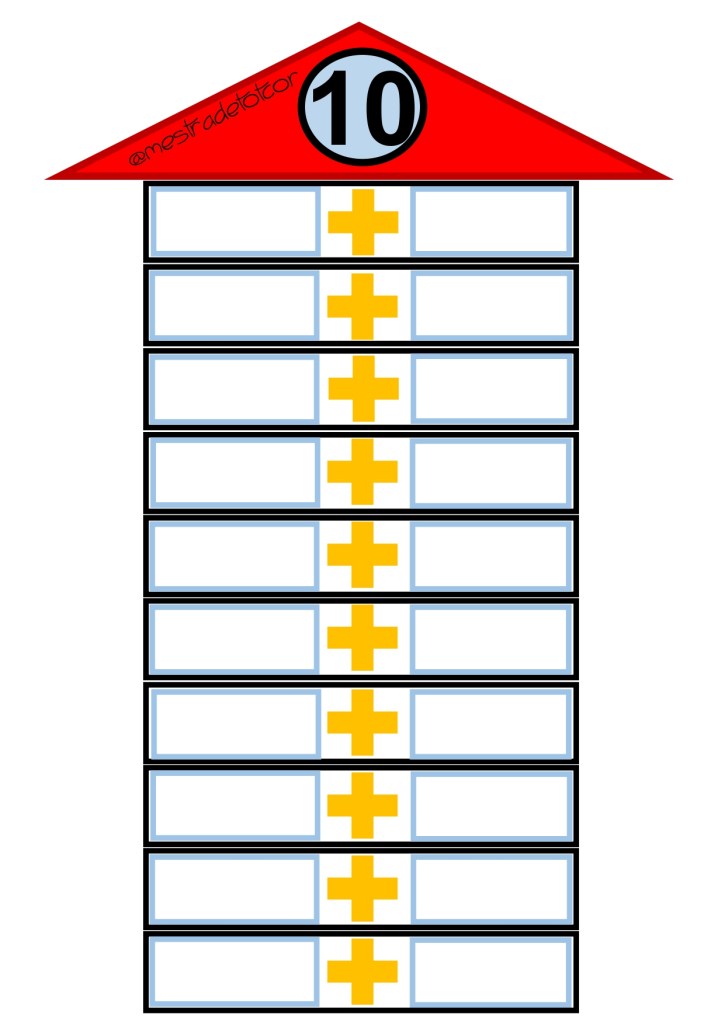 Per últim us deixe la caseta dels amics del 10. En aquesta casa es treballa la desena i les possibles formes d’arribar a obtindre la desena mitjançant la suma de dos números. El concepte de desena és prou complexe i, per això, cal practicar-ho moltes vegades. Aquesta casa del 10 afavoreix el càlcul mental perquè jugant, jugant, agafen agilitat mental i tenen clares les primeres sumes. Els Superherois i Superheroines ja ho han treballat al cole però és difícil i s’oblida. Com funciona? A cada pis de l’edifici viuen 10 habitants, no més ni menys, 10. Han de repartir-se de diferents maneres per a aprendre que hi ha moltes maneres d’aconseguir un mateix número. Jo tinc diferents casetes amb diferents números d’habitants però amb aquesta considere que és suficient i, a més a més, és la que representa el concepte més complicat i útil per al càlcul mental més avant, i sumar i restar desenes ràpidament. D’altra banda aprenem la propietat conmutativa de la suma sense donar-se compte, la qual cosa també afavoreix el càlcul mental. Al reomplir les diferents altures de l’edifici i probar diferents opcions veuran que poden ficar, per exemple, 4+6 i també 6+4 i que ambdues donen 10. De la mateixa manera poden estar practicant la resta perquè col.loquen un número i han de saber quants falten per arribar a 10. Potser arriben al resultat fent retrocompte i, baixant dits de la seua mà per a trobar el número buscat i, d’aquesta manera, estan restant.