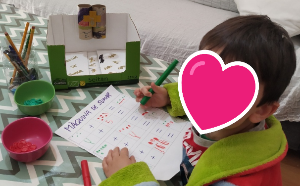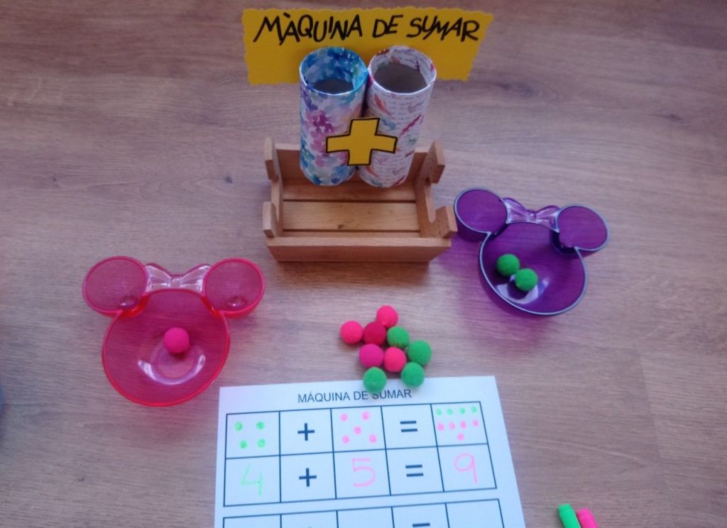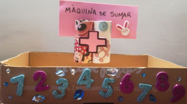 És el moment d’iniciar la suma. En realitat sumem però no ho sabem. I ara és el moment de saber-ho. Anem a fer-ho de manera manipulativa amb una màquina de sumar que anem a fabricar amb la millor ferramenta que tenim: les nostres manetes. I amb materials que tenim per casa i que podem reutilitzar. Us explique com he fet le meua: