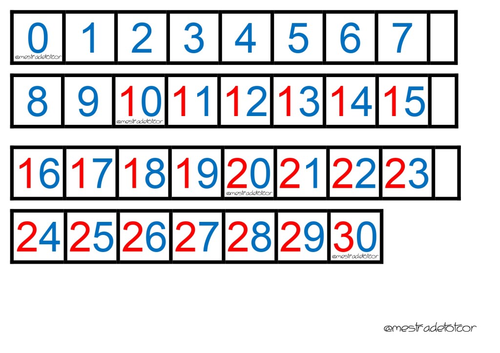 A continuació teniu la recta numèrica del 0 al 30, que seria el nostre objectiu enguany. A la plantilla us explique diverses maneres d’utilitzar-la augmentant progressivament la dificultat de les activitats.
