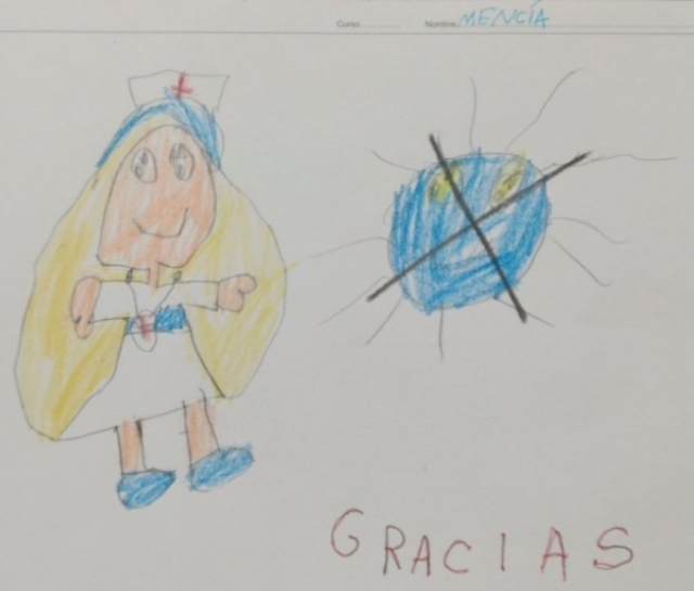 Mis Superhéroes y Superheroínas de 4 años han hecho también su homenaje de la mejor manera que saben. Con un dibujo donde representan toda su admiración por otras personas con superpoderes y con unas letras que empiezan a conocer y hacen con mucha ilusión. Todos sus dibujos son para tod@s l@s sanitari@s que estáis haciendo de escudo contra el virus que nos ataca. De su parte, muuuuuuuuuuuuchas gracias. ¡Ánimo!