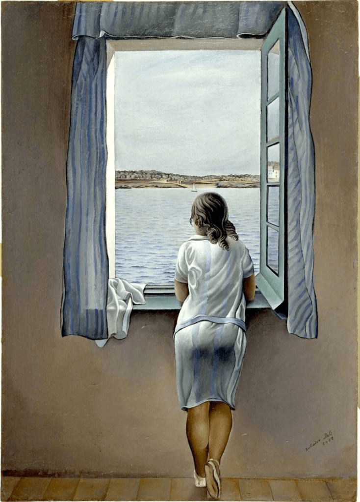 Pensant en treballar l’art des de casa no podia pensar en una altra obra que ‘La muchacha en la ventana’, de Salvador Dalí. Perquè ara estem vivint així… Mirant el món des de la finestra, aplaudint als sanitaris des de la finestra, imaginant des de la finestra què farem al eixir, pensant des de la finestra com estarà la gent… Tot des de la finestra.