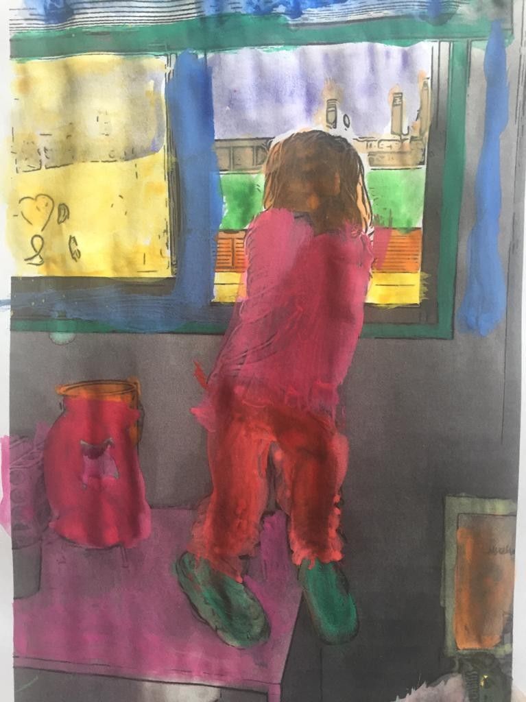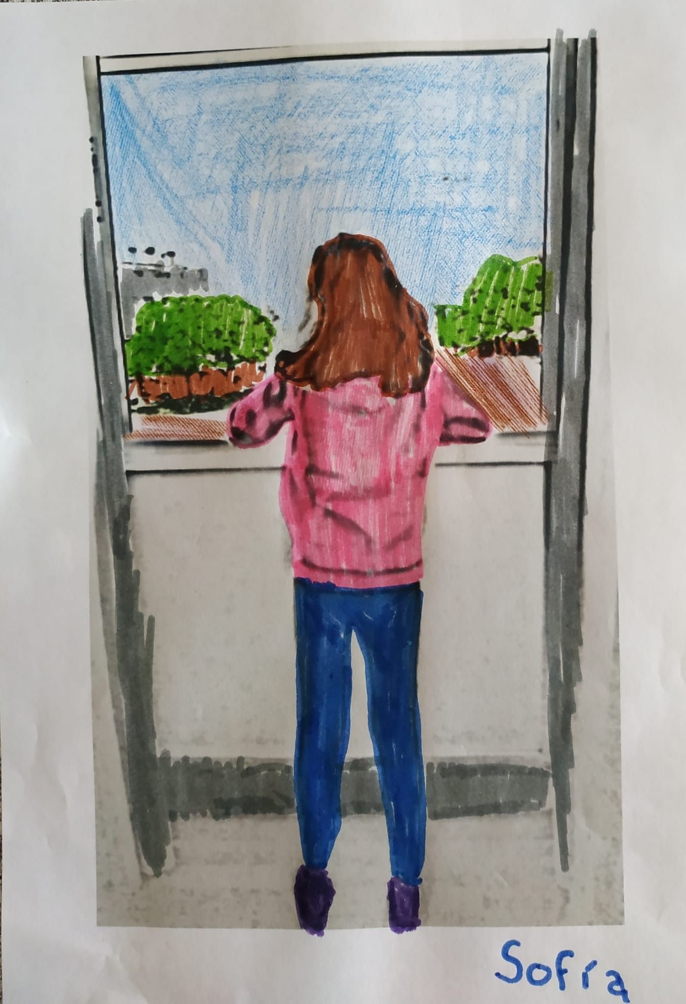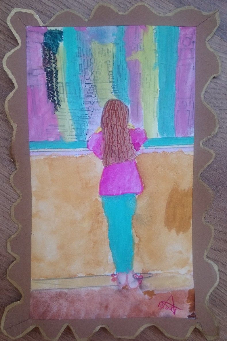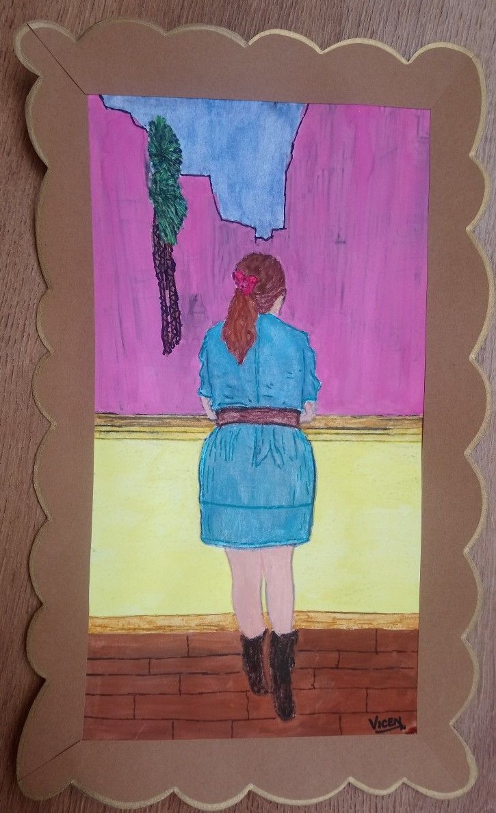 pensando en trabajar el arte desde casa no podía pensar en otra obra que ‘La muchacha en la ventana’, de Salvador Dalí. Porque ahora estamos viviendo así… Mirando el mundo desde la ventana, aplaudiendo a l@s sanitari@s desde la ventana, imaginando desde la ventana qué haremos al salir, pensando desde la ventana cómo estará la gente… Todo desde la ventana.