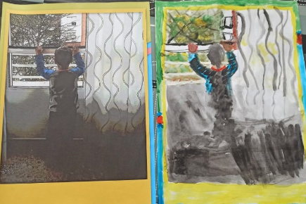 Propuesta artística: hacer una foto, imitando la del cuadro de Dalí, en tu ventana y después pintarlo con acuarelas y, si no tenemos, con otro material. Cuando hemos terminado nuestro cuadro, ponerle un marco. Y ya tenemos una obra artística en casa que siempre nos recordará esta experiencia que estamos viviendo en el confinamiento. La época en la que vivíamos desde la ventana.