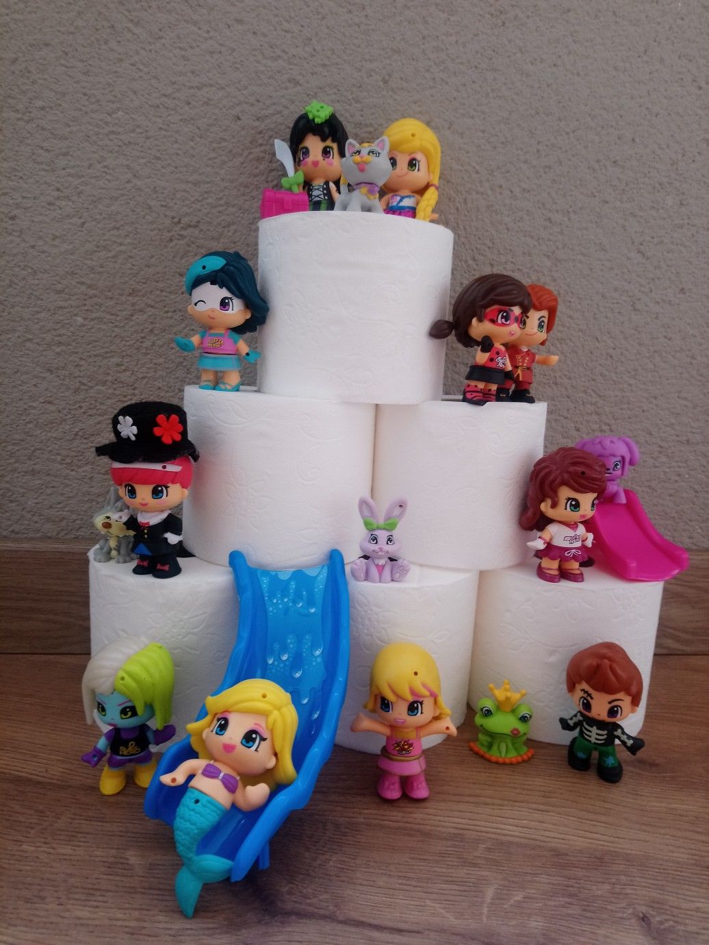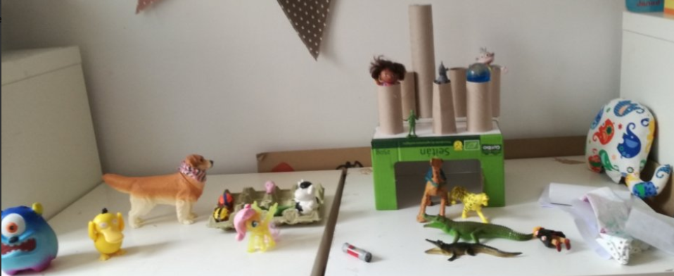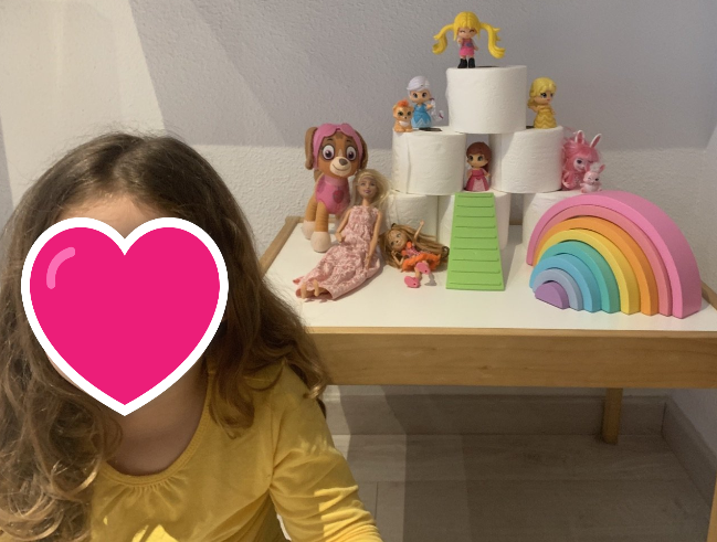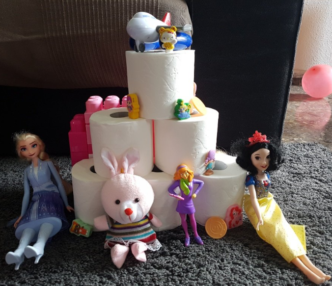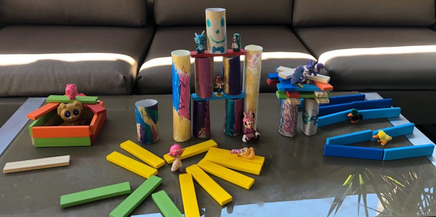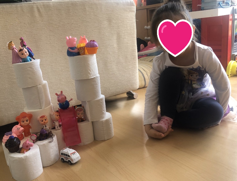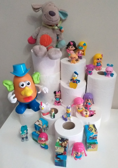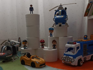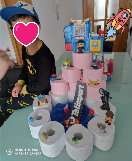 Aprendre jugant és fonamental. Les construccions són matemàtica pura, arquitectura, ingenieria, disseny, perspectiva, art, equilibri, simetria… I, per supost, diversió. Desenvolupa la creativitat, la psicomotricitat fina i el nostre intelecte. Hi ha diferents blocs de construcció plens de colors i possibilitats però, es pot construir amb diferents objectes i materials. Per això, vaig fer una proposta a les famílies per a fer una construcció diferent des de casa amb un material totalment d’actualitat: el paper higiènic. La meua forma de veure la vida es sempre des de la creativitat, des de la positivitat i des del bon humor. La diversió millora qualsevol situació que ens toque viure i, la de ara, es prou difícil. Així que proposta matemàtica i artística: fes una composició contruint amb paper higiènic i els ninots o joguets que vullgues i, després, representa-ho en un paper.