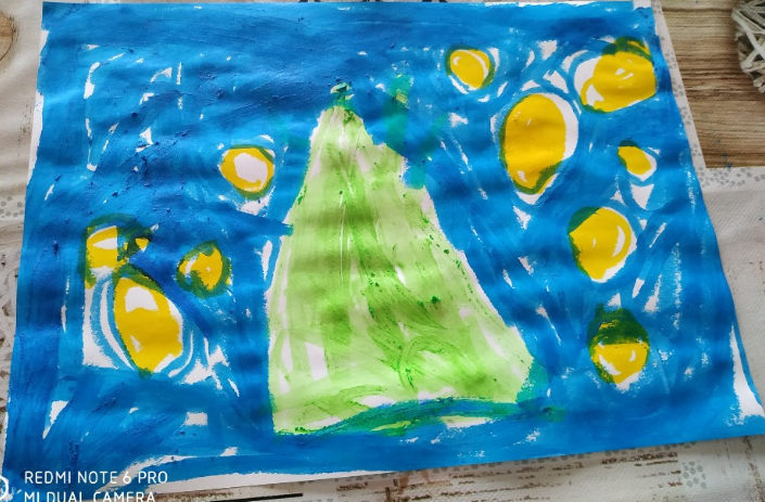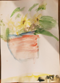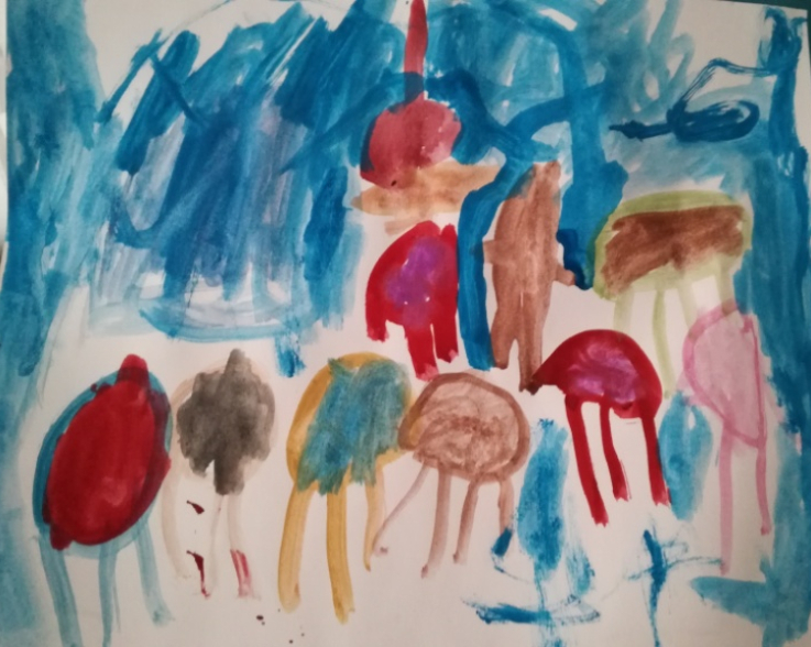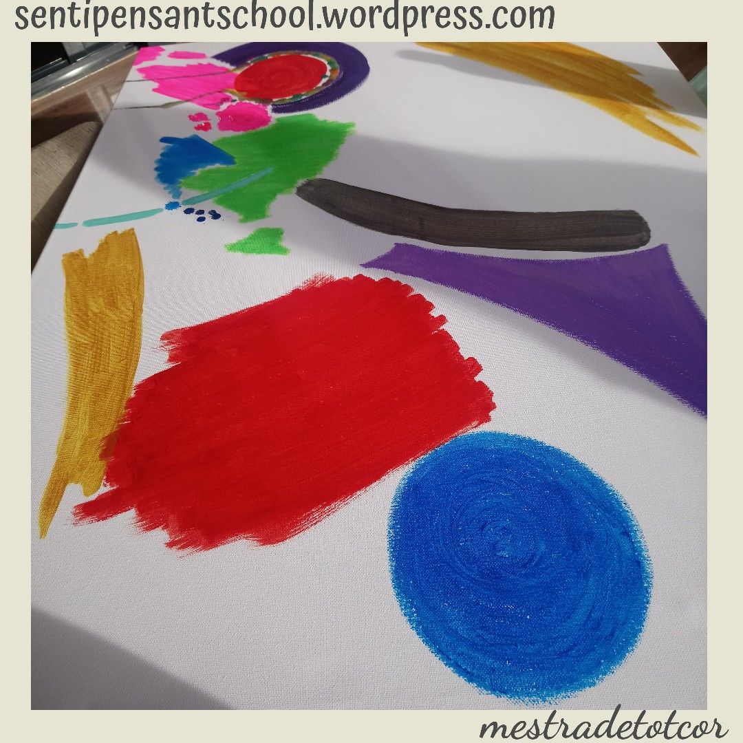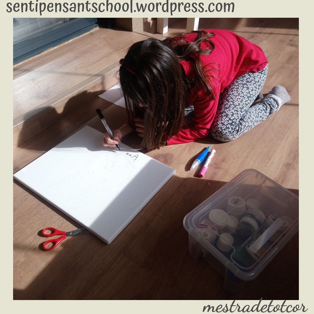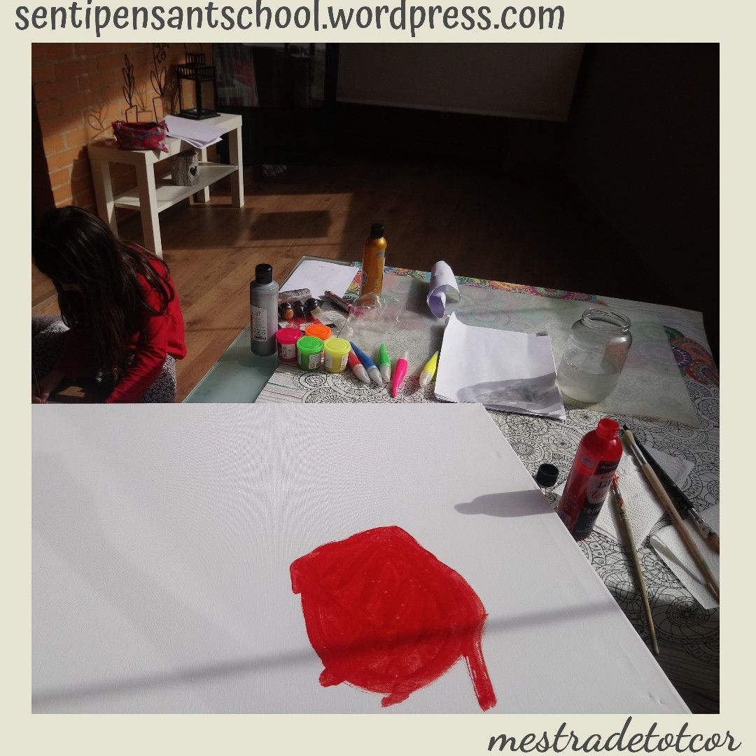 Aquest és el meu quadre, resultat d’una vesprada escoltant música i pardalets al carrer, al solet de la terrassa, mirant les pintures i decidint segons anava fent. Mestrestant disfrutava de mirar a Paula fer el seu propi quadre i compartir eixos moments amb ella. Crec que faré més a sovint aquestes coses perquè me fan sentir genial!!!