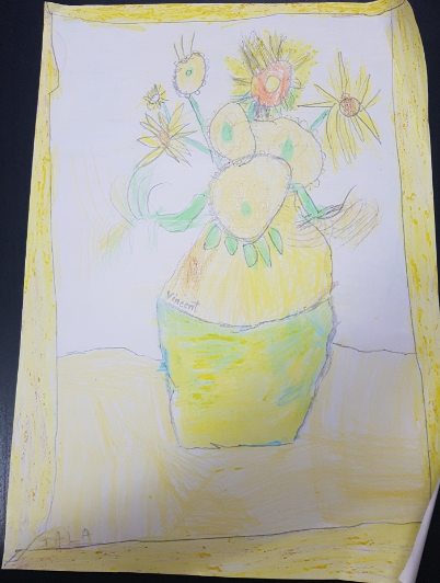 Hi ha moltes disciplines artístiques: pintura, esculptura, arquitectura, música, dansa, cine, fotografia, literatura… Però aquesta vegada he decidit treballar amb els meus Superherois i les meues Superheroines, la pintura. Donat que tenim Internet que ens fa servir de museu virtual, havien d’investigar sobre diferents quadres i així poder parlar d’art amb les seues famílies. I cadascú imitar el quadre que més cridara la seua atenció. He de dir que cada dia són més artistes. I no ho dic perquè tenen un any més i per l’edat dibuixen i pinten millor. No. Ho dic perquè el treball emocional i de suport a la seua autoestima va funcionant. Sempre dic una cosa fonamental a classe: el més important de tot és intentar-ho. Si ho intentes ho aconseguiràs. Tindre un paper en blanc davant provoca inseguretat i es senten incapaços de fer les coses. I trobe que han millorat molt en eixe aspecte. Perquè artistes van nàixer. I damunt, tenen un criteri espectacular. Fa anys vaig preparar una llista d’obres d’art de diferents disciplines per a les meues oposicions de mestra. De moment, totes les obres que han realitzat estan entre les que vaig considerar les 15 més representatives i, que eren molt interessants per a treballar en un aula d’Educació Infantil per diversos i variats motius. Aci teniu les seues eleccions i la seua versió dels originals.