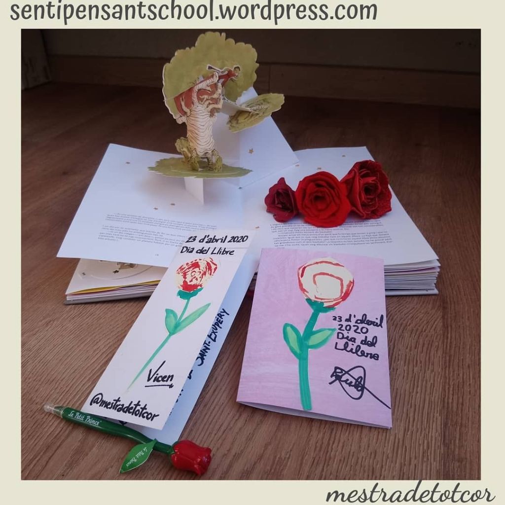 A més a més hui hem preparat unes targetes amb les roses i una frase del increíble conte del Petit Príncep d’Antoine de Saint-Exúpery. Són tan artistes…