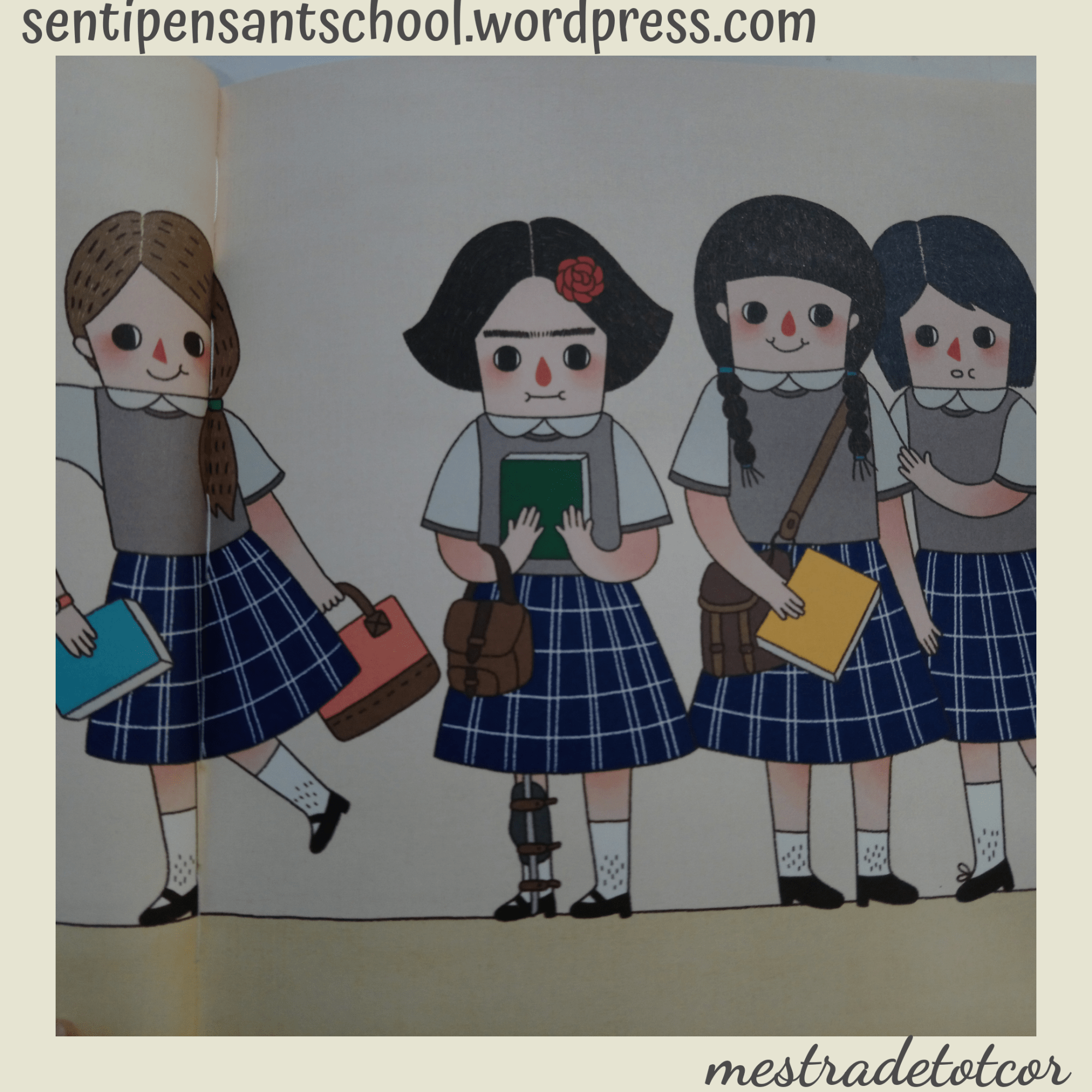 El següent pas va ser l’arreplegada de material portat des de les cases. Contes, cartells… I comença el projecte de descobriment de Frida Kahlo. Descobrim d’on era, on vivia, què li va passar, per què és coneguda, la seua obra… L’enfermetat que va patir de xicoteta ens va fer empatitzar amb ella i, des d’un principi, ens va encantar treballar sobre la seua vida.