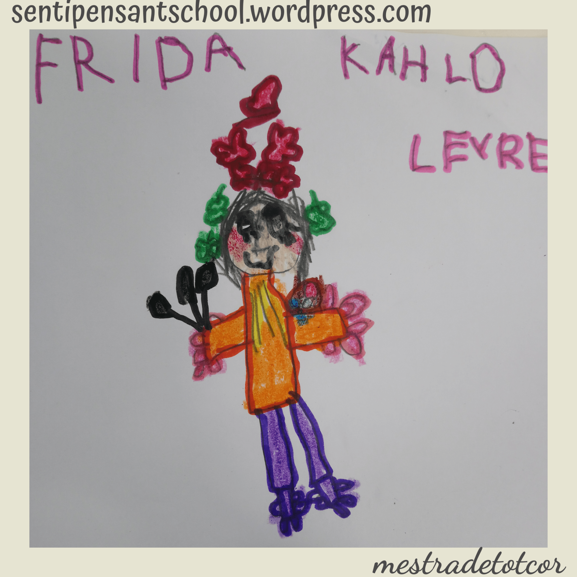 Investigar a Frida ens va aportar moltes converses interessants. Per exemple, parlar sobre perquè Frida ho tenia difícil en el món de l’art. Amb 4 anys és difícil pensar que una persona que li agrada pintar, siga menyspreada per ser xica. Us faig una pregunta, perquè amb els anys canvia aquest pensament? L’Educació rebuda no és la correcta. Entenent per educació tota aquella informació rebuda a nivell social i no tractada degudament. Pensem sobre això perquè hem de fer que la societat siga millor. Per als meus Superherois i les meues Superheoines, saber que Frida va ser la primera dona en exposar els seus quadres en el museu del Louvre, els va sorprendre i els va alegrar perquè ja havien empatitzat amb ella i sentiren que era una Superheroina. Sentien molta curiositat i volien saber més i més. Mencía va tindre una de les seues genials idees: Vicen, anem al museu!!! Els vaig explicar que estava a l’altra part del món. Resposta de Mencía: doncs hui no Vicen, organitza una excursió!!! Així de meravellós és el meu univers… Us conte això perquè aquesta pandèmia també ha portat coses positives com, per exemple, que el Museu Frida Kahlo ha obert les seues portes de forma virtual!!! Ara podem anar, vaig pensar jo. I així completem una experiència que va ser meravellosa i la fem encara més enriquidora. Així que vaig convidar als meus Superherois i Superheroines a visitar la casa museu de Frida per tal de conéixer-la i inspirar-se amb la seua creativitat i, després, realitzar una obra d’art pròpia. Ací teniu les seues fantàstiques creacions. Jo no puc estar més orgullosa dels meus artistes i de les seues famílies, que fan de les meues mans i porten la màgia fins a casa i, més que mai, fem d’aquesta relació mestra-famílies, un gran equip.