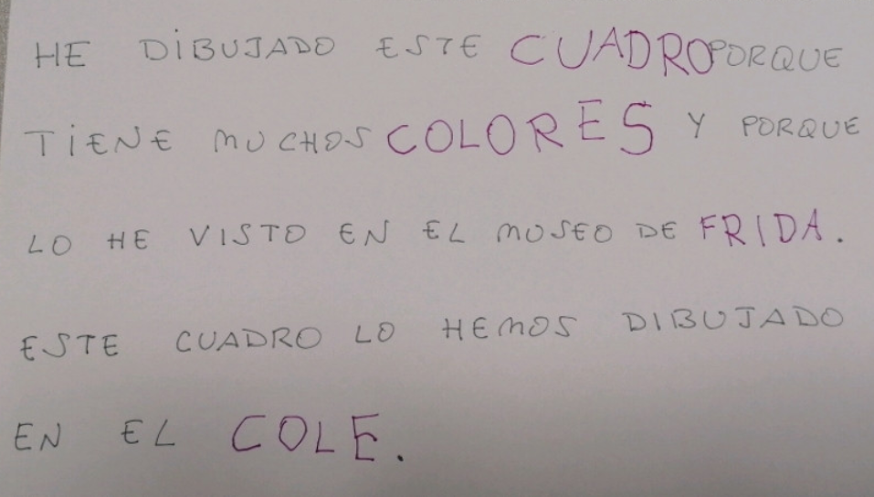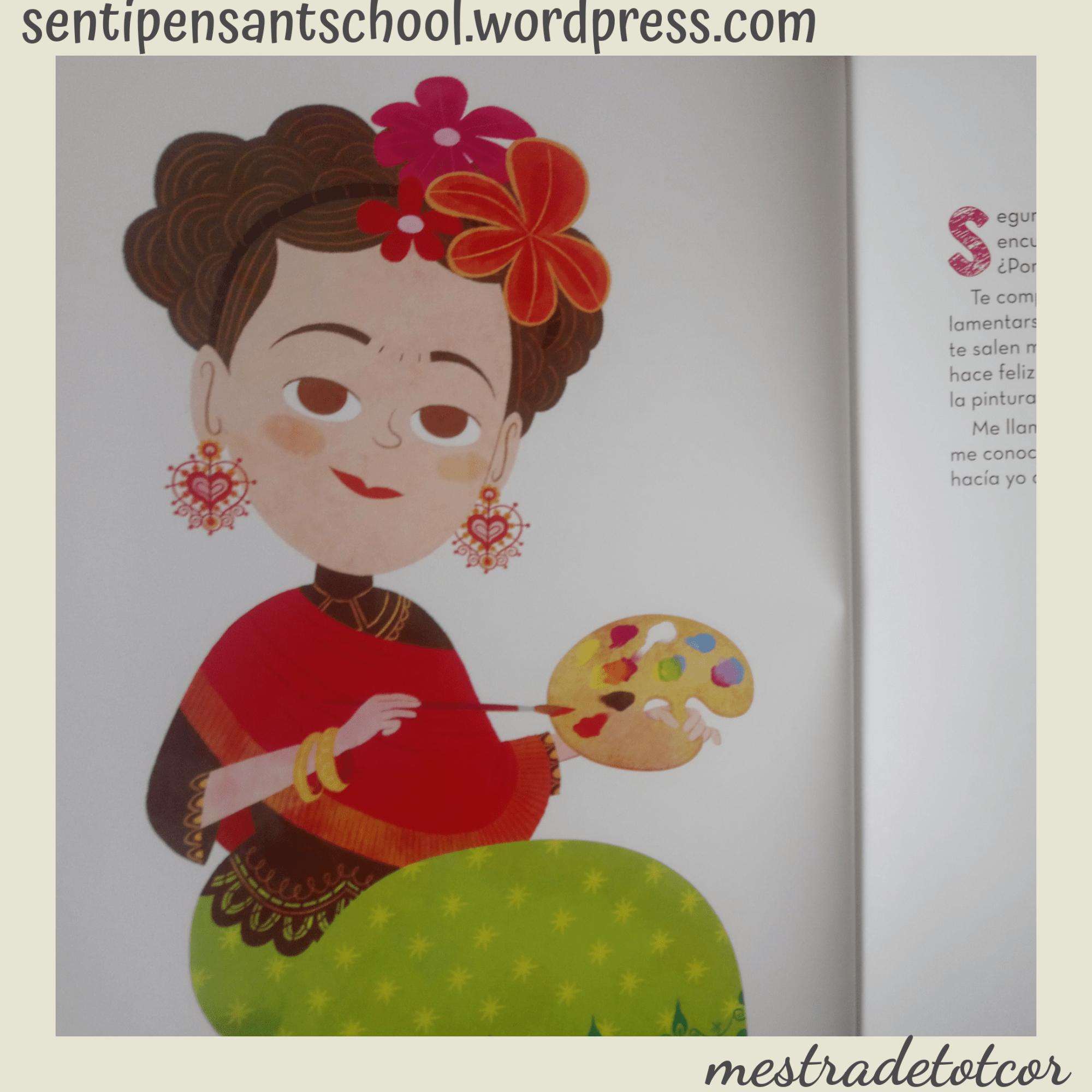 Treballar a partir d’un conte, a partir d’una història, d’un relat… Facilita l’interés, la motivació, l’aprenentatge. És un punt de partida meravellós per a començar aventures, descobriments, interessos… I així va passar amb la vida de Frida. Us deixe imatges del procés, encara que no es poden transmetre totes les coses que vam fer, ni les converses, ni l’interés mostrat… Però, almenys, una xicoteta mostra tinc.