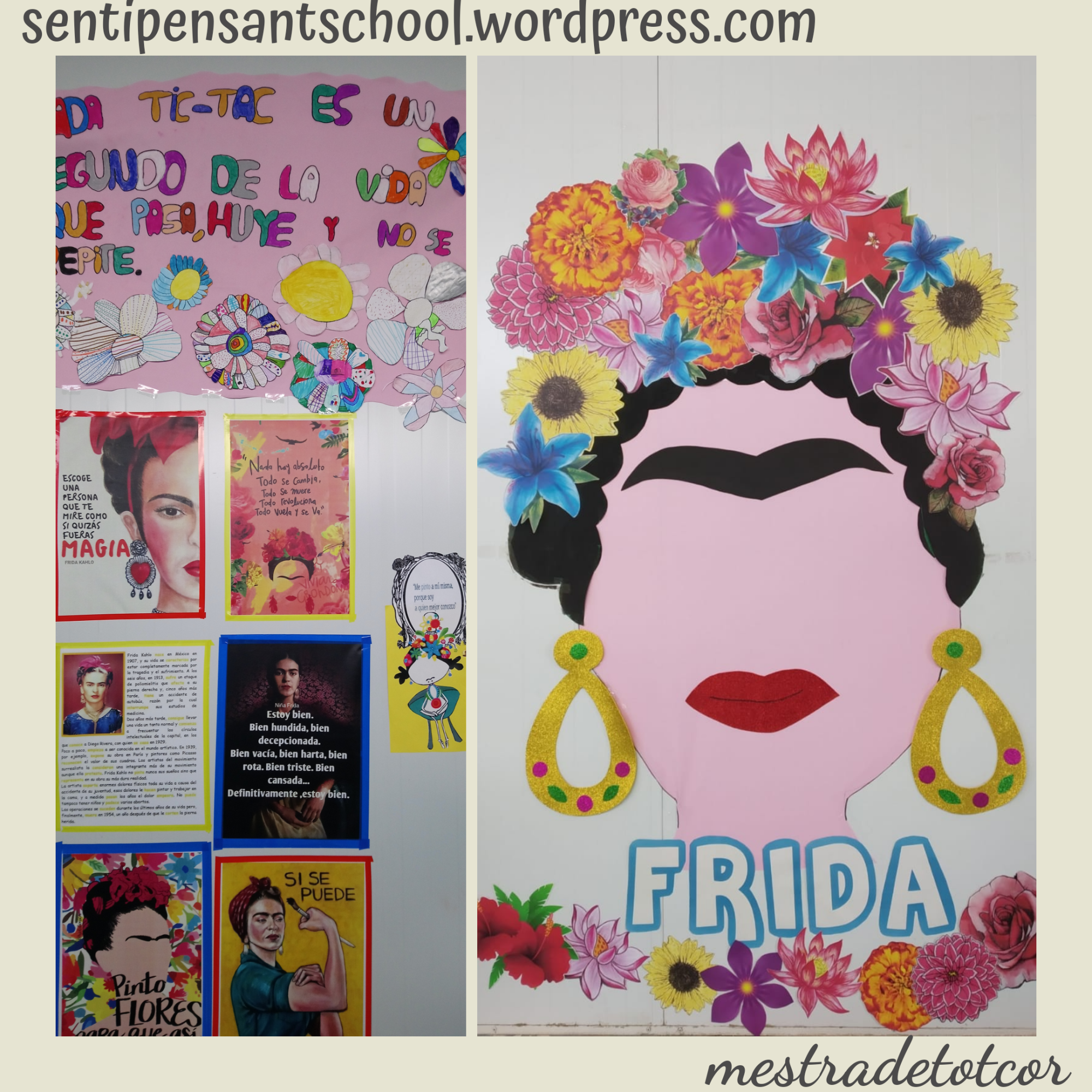Convertir l’escola en un museu va implicar molt de treball. Però era la millor manera que vaig pensar per a conéixer el treball de Frida Kahlo i per a ficar l’art en el lloc que mereix. l’Educació Artística és més important del que moltes vegades es considera i hauria de tindre més importància a les aules. Què millor manera que fer la casa museu de Frida i plenar-ho d’obres d’art? Com a Coordinadora d’Igualtat i Convivència de la meua escola he de fer un sobreesforç per a motivar la participació de la comunitat educativa. Evidentment, hi ha gent que passa, com en tots llocs, i gent que participa i s’involucra a tope. Però, sempre hem de fixar-se en el percentatge de gent que vol canviar el món a millor i continuar endavant. En cas contrari, no fariem res i la societat no evolucionaria. Conseguimos el mejor museo posible, participó todo el colegio y las paredes se llenaron de mensajes de igualdad y de arte, realizado por artistas de todas las edades. por tanto, objetivo cumplido: trabajamos sobre y por la igualdad entre personas y, trabajamos sobre y por la importancia del arte.