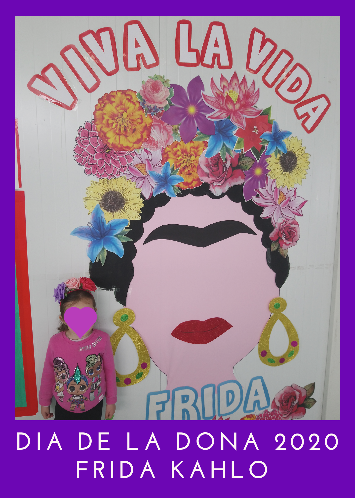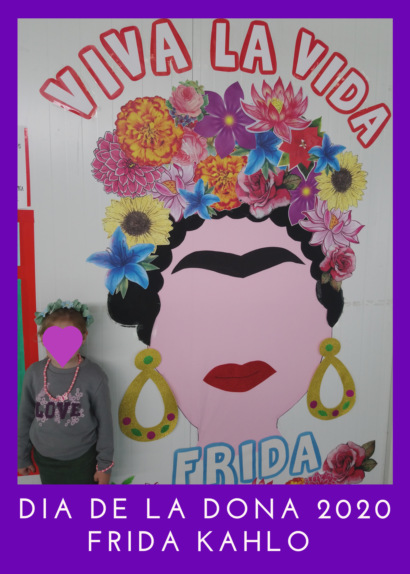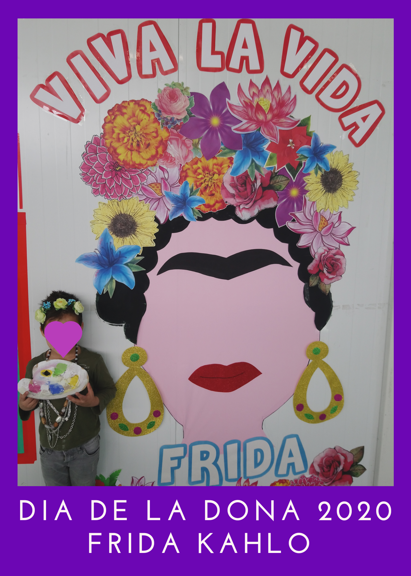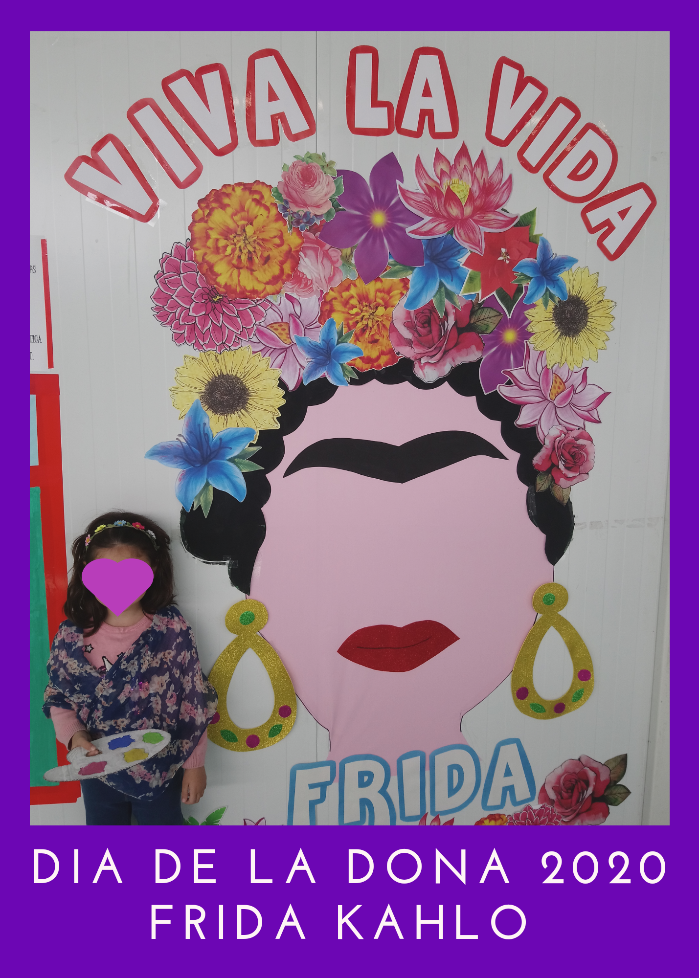 Este año hemos trabajado en el colegio, Frida Kahlo. ¿Por qué? Porque fue una mujer valiente, trabajadora y luchadora. Superó muchos obstáculos para poder dedicarse a aquello que más le gustaba y superar enfermedades fuertes que le impedían salir de su casa, incluso de su cama. Fue todo un proyecto realizado en el colegio con la colaboración de las familias. Este proyecto finalizó el 8 de marzo, Día Internacional de la Mujer, en el que hicimos un homenaje a ésta mujer tan revolucionaria, caracterizándonos de ella, con mucho respeto e ilusión.