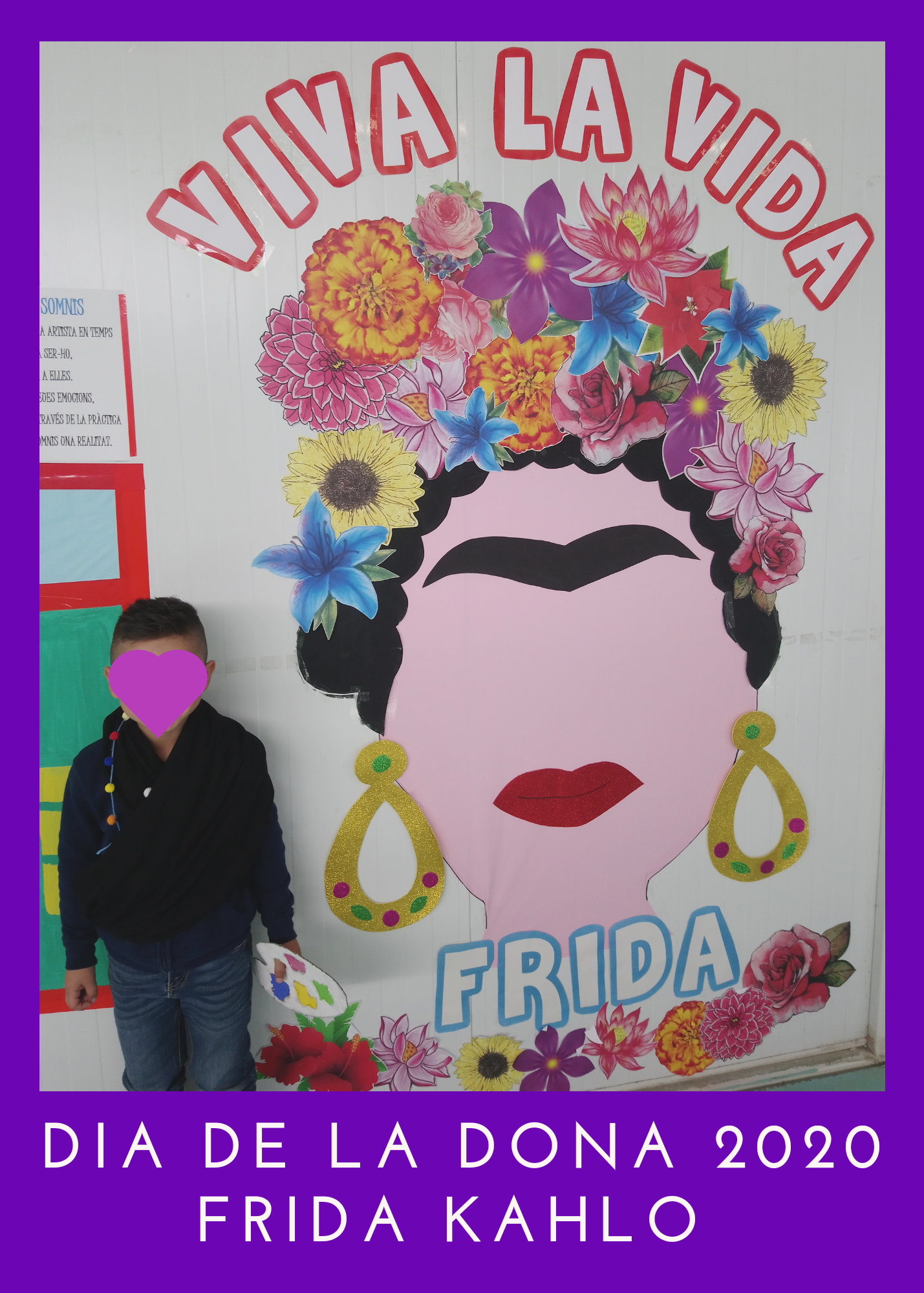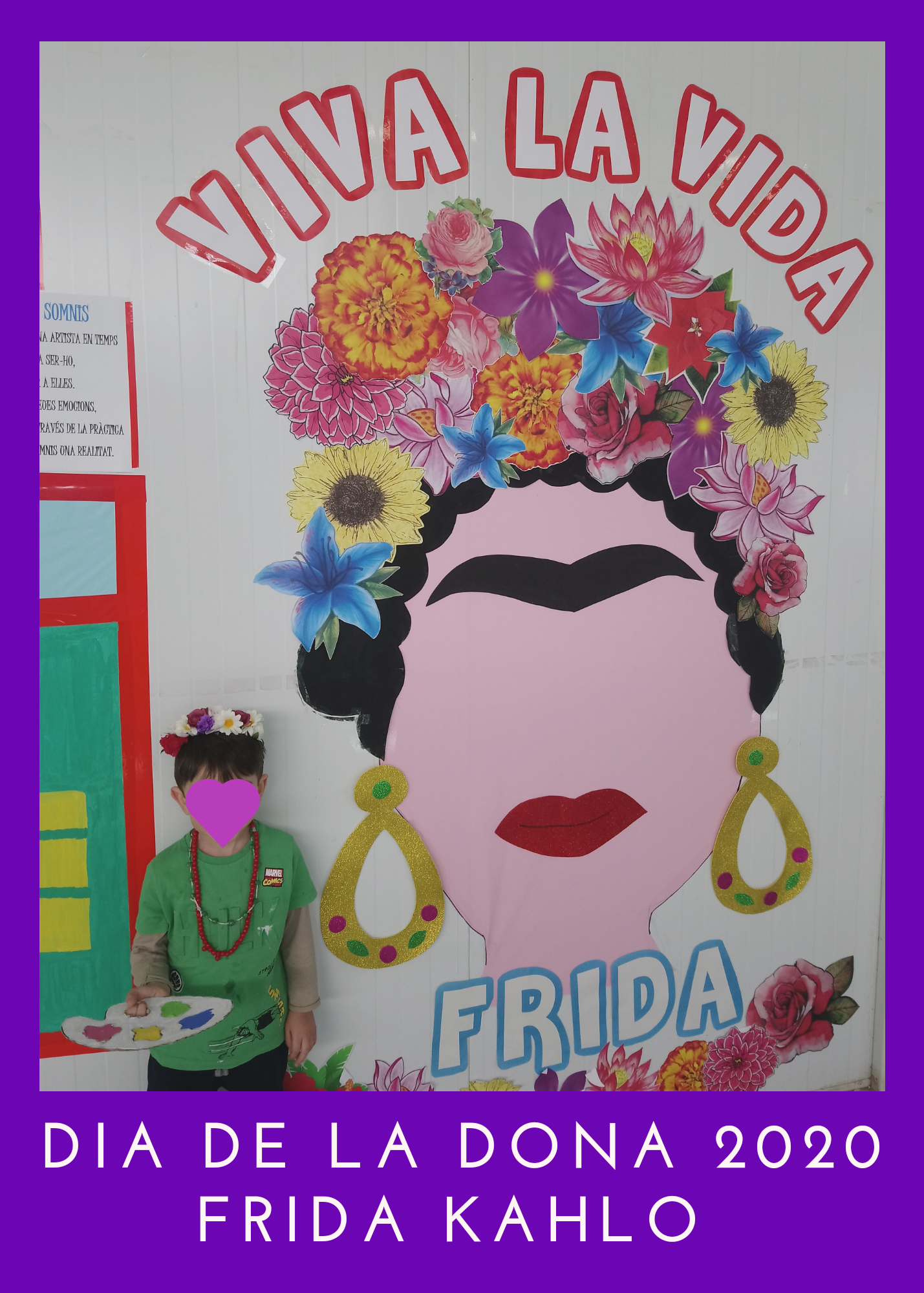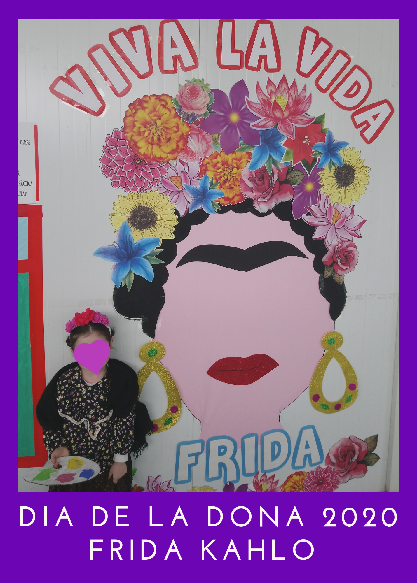 Enguany hem treballat a l’escola, Frida Kahlo. Per què? Perquè va ser una dona valenta, treballadora i lluitadora. Va superar molts obstacles per a poder dedicar-se a allò que més li agradava i superar malalties fortes que l’impedien eixir de sa casa, inclús del seu llit. Va ser tot un projecte realitzat a l’escola amb la col.laboració de les famílies. Aquest projecte va finalitzar el 8 de març, Dia Internacional de la Dona, on vam fer un homenatge a aquesta dona tan revolucionaria, caracteritzant-nos d’ella, amb molt de respecte i il.lussió.