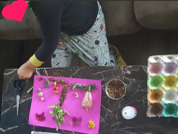 Esta actividad es recomendable para cualquier edad. Mi hija de 9 años disfrutó muchísimo buscando y recogiendo material por los campos. Realizó la actividad con la compañía de su súper amiga Sofía. En compañía virtual, por supuesto. Con el móvil enfrente de ellas, cada una en su casa con sus materiales y sus pinturas. Hablando de forma relajada y compartiendo ideas e impresiones. El arte fluye cuando el ambiente es apropiado, cuando las personas nos sentimos en confianza y relajadas. Era muy bonito escucharlas de fondo. Yo me retiré de la terraza para que pudieran hacerlo con total libertad. Muchas veces la inseguridad hace que preguntes, pidas consejo porque es más fácil que alguien te diga qué hacer que tomar tú la decisión.