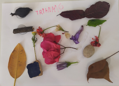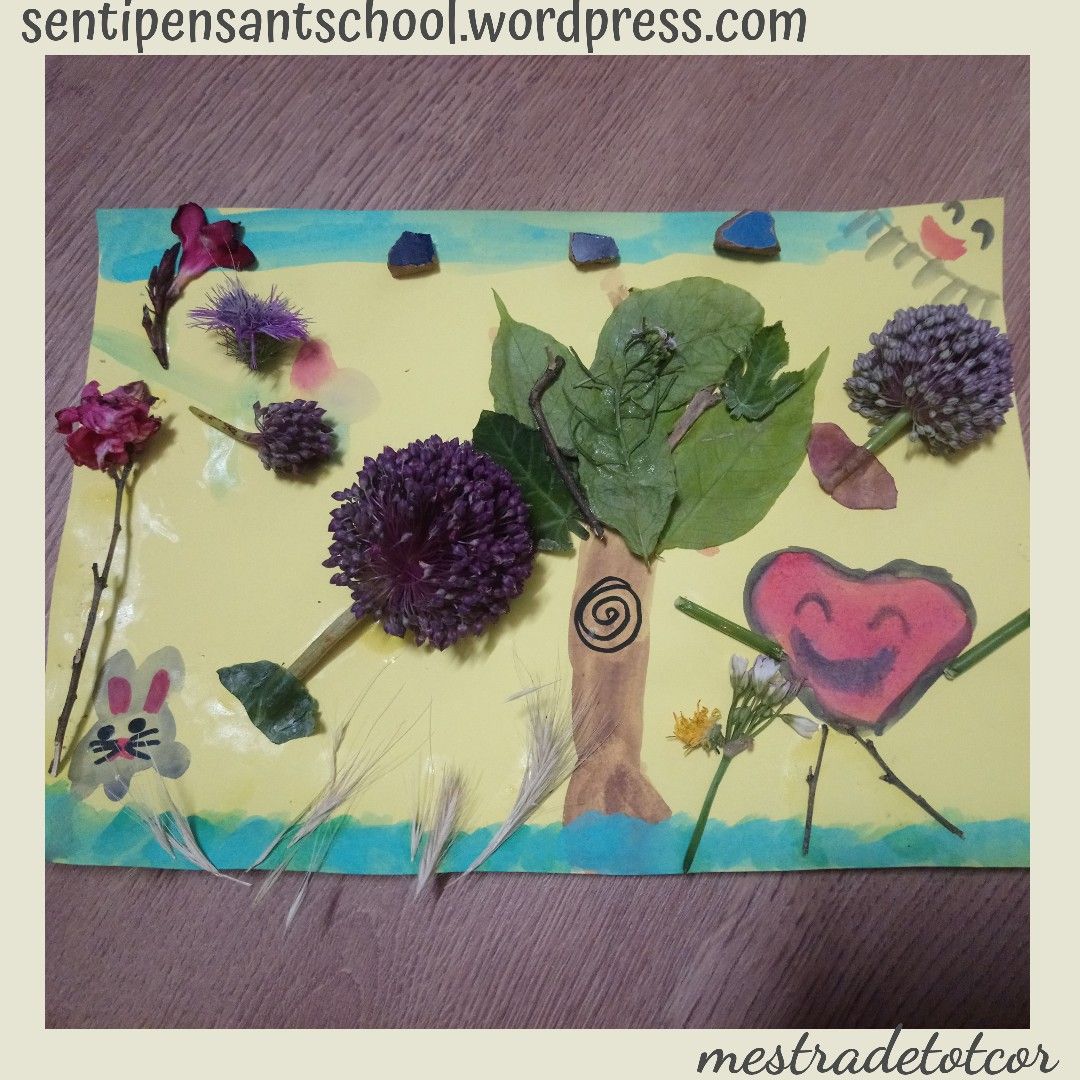 Parlant, parlant… va utilitzat tot el material arreplegat. Així que, al dia següent, vam tornar a arreplegar més floretes pel camp. Jo tenia moltes ganes de realitzar aquesta proposta. Només l’activitat d’arreplegar materials naturals de diferents colors ja és una activitat molt enriquidora i relaxant. Però de veres que recomane a tothom que realitze la seua pròpia obra amb elements de la naturalesa perquè semble que es pare el temps. És una activitat de molta sensibilitat, els colors, el tacte i l’olor de les flors potencien la teua sensibilitat artística i fan de l’experiència que siga única.