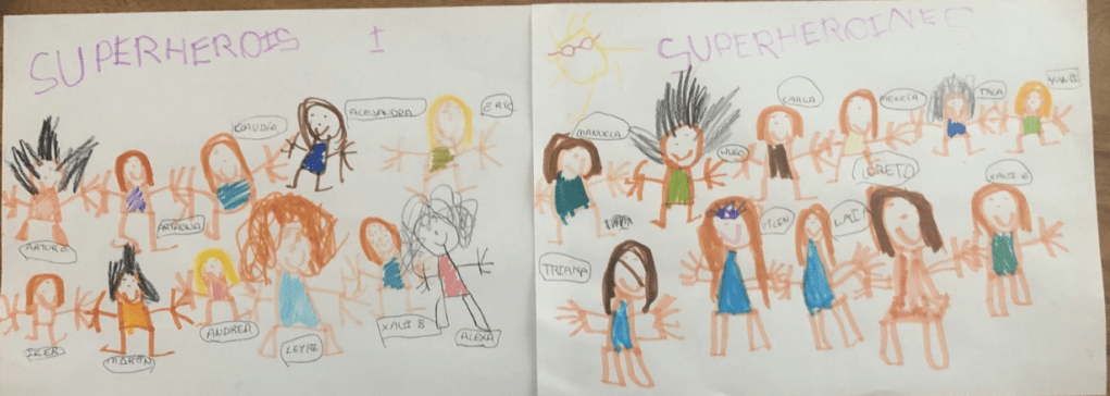 Ací teniu les famílies dels meus Superherois i les meues Superheroines. A l’esquerra us he ficat el dibuix de la seua família fet els curs passat, en 3 anys. I a la dreta el dibuix fet ara per a celebrar el Dia Internacional de la Família 2020 pels mateixos alumnes a la classe de 4 anys. L’evolució en la majoria és espectacular. El dibuix reflexa el seu món interior, la seua perspectiva emocional i la visió i representació de la figura humana. L’any passat va ser una sorpresa per a les famílies. Enguay no ha estat possible sorprendre. Però ho hem fet junts gràcies a la tecnologia. I he pogut escoltar les seues explicacions sobre el dibuix en directe i, això, ha sigut molt gratificant.