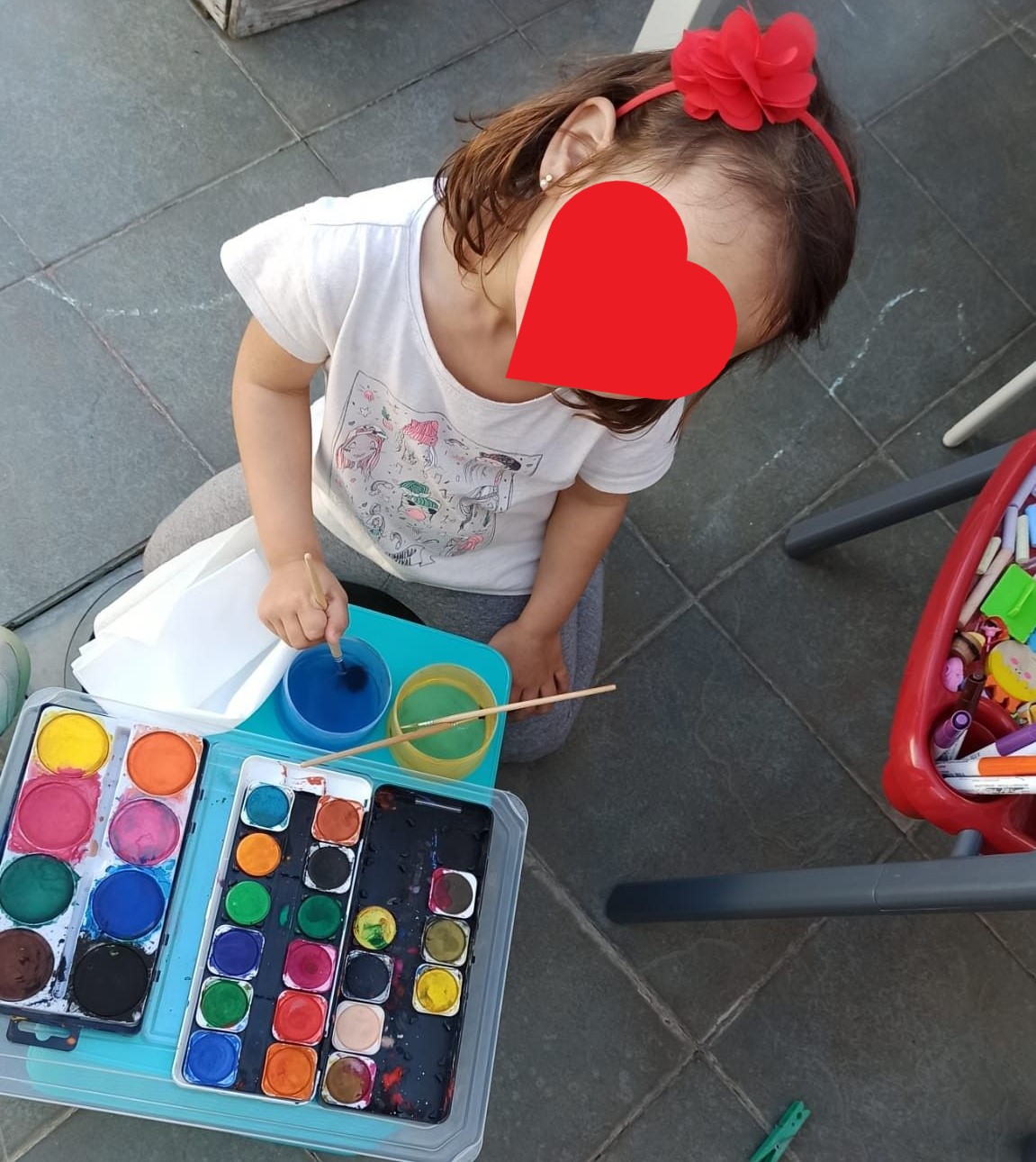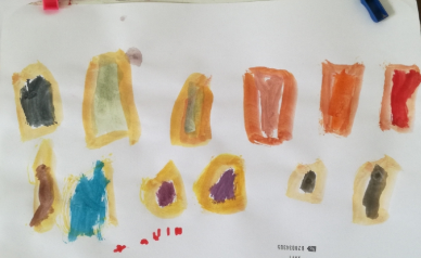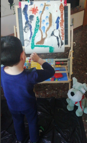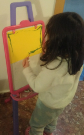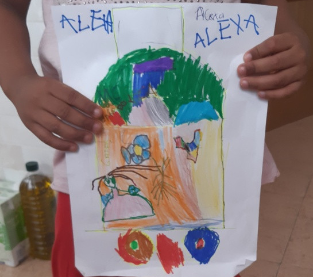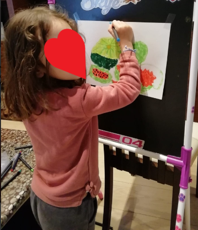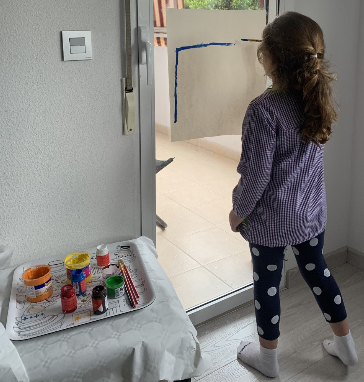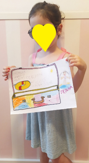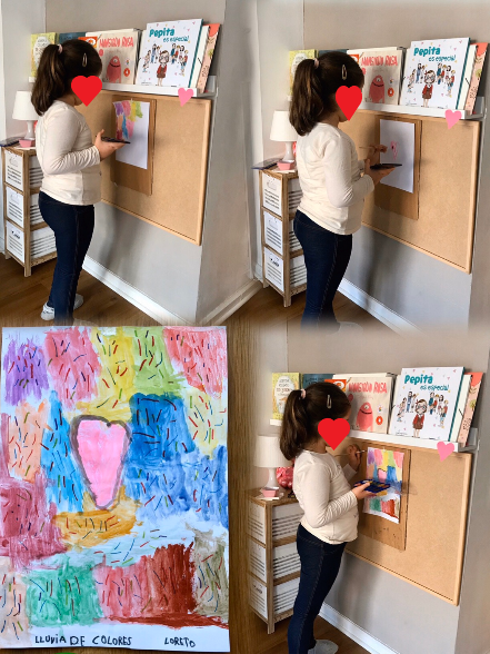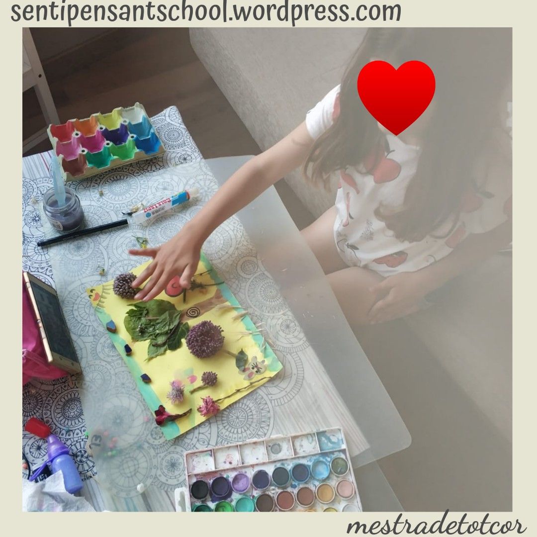 Aquesta activitat és recomenable per a qualsevol edat. La meua filla de 9 anys va gaudir moltíssim buscant i arreplegant material pels camps. Va realitzar l’activitat amb la companyia de la seua super amiga Sofía. En companyia virtual, per supost. Amb el mòbil enfront d’elles, cadascuna a sa casa amb els seus materials i les seues pintures. Parlant de manera relaxada i compartint idees i impressions. L’art fluïx quan l’ambient és apropiat, quan les persones ens sentim en confiança i relaxades. Era molt bonic escoltar-les de fons. Jo vaig retirar-me de la terrassa perquè pugueren fer-ho amb total llibertat. Moltes vegades la inseguretat fa que preguntes, demanes consell perquè és més fàcil que algú et diga què fer que prendre tu la decisió.