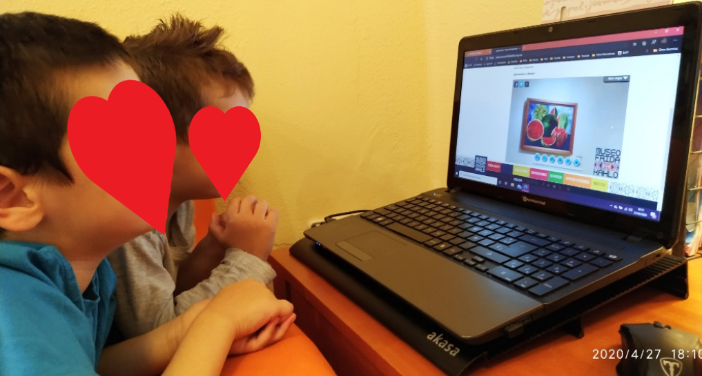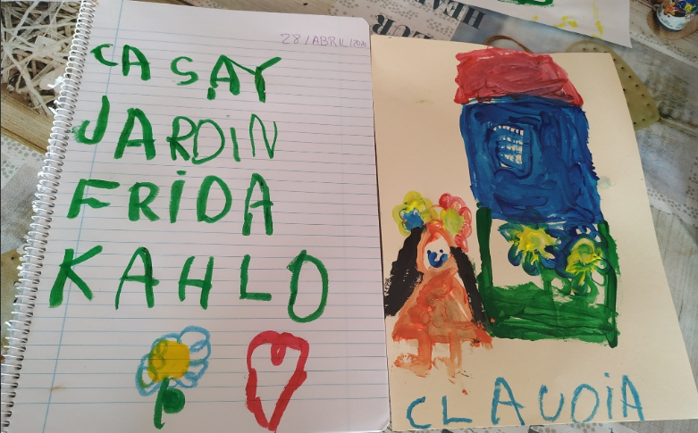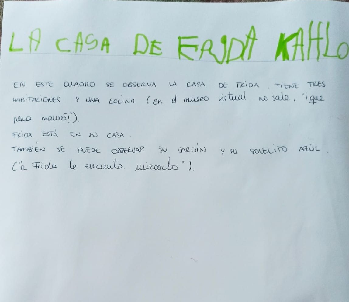 Investigar a Frida nos aportó muchas conversaciones interesantes. Por ejemplo, hablar sobre porqué Frida lo tenía difícil en el mundo del arte. Con 4 años es difícil pensar que una persona que le gusta pintar, sea menospreciada por ser chica. Os hago una pregunta, ¿por qué con los años cambia este pensamiento? La Educación recibida no es la correcta. Entendiendo por educación toda aquella información recibida a nivel social y no tratada debidamente. Pensemos sobre eso porque tenemos que hacer que la sociedad sea mejor. Para mis Superhéroes y mis Superheroínas, saber que Frida fue la primera mujer en exponer sus cuadros en el museo del Louvre, les sorprendió y les alegró porque ya habían empatizado con ella y sintieron que era una Superheroína. Sentían mucha curiosidad y querían saber más y más. Mencía tuvi una de sus geniales ideas: Vicen, vamos al museo!!! Les expliqué que estaba en la otra parte del mundo. Respuesta de Mencía: pues hoy no Vicen, organiza una excursión!!! Así de maravilloso es mi universo… Os cuento eso porque esta pandemia también ha traído cosas positivas como, por ejemplo, que el Museo Frida Kahlo ha abierto sus puertas de forma virtual!!! Ahora podemos ir, pensé yo. Y así completamos una experiencia que fue maravillosa y la hacemos aún más enriquecedora. Así que invité a mis Superhéroes y Superheroínas a visitar la casa museo de Frida para conocerla e inspirarse con su creatividad y, después, realizar una obra de arte propia. Aquí tenéis sus fantásticas creaciones. Yo no puedo estar más orgullosa de mis artistas y de sus familias, que hacen de mis manos y llevan la magia hasta casa y, más que nunca, hacemos de esta relación maestra-familias, un gran equipo.