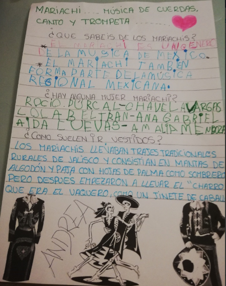 Una vegada hem investigat sobre mariachis, hem vist la pel.lícula de Coco i ens hem donat compte de la importància de la música en Mèxic i, a més a més, hem vist a Frida Kahlo en la pel.lícula. Gran part de la classe ja havíem vist Coco però, ara sabem qui és Frida i, per supost, ens ha encantat vore-la a la peli. Ara, després d’investigar vegent la pel.lícula sobre la seua nit de morts, podrieu fer una calavera. A mi m’encanten les calaveres però les mexicanes són diferents. Alli es diuen també catrines. De segur que seran espectaculars!!!